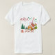 T-shirts decoradas com imagens bonitinhas de Papai Noel sorridente, estão a ser olhadas para a frente por crianças entusiasmadas. O design é colorido, com detalhes de árvores, casas, neve, renas que acrescentam uma atmosfera alegre. A atmosfera está cheia de alegria e espírito de férias, criando memórias maravilhosas. Esta camiseta não só é funcional, como também captura os momentos felizes que fazem o Natal ainda mais espetáculos