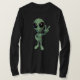Design humorístico de alienígena verde, sinalizando o sinal V para a paz - paz mundial, paz global, paz através do universo! As pessoas sorriem quando veem esta imagem.