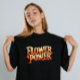Aqui está outro design de camiseta inspirado nos anos 70 com tipografia ousada e groovy lendo "Potência da Flor" com padrões florais vibrantes e retrógrados. ✨ 🌼 🌸