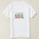 A t-shirt apresenta o texto "Soul Clássico" num design de multicores vibrante. Imagine o "Clássico" exibido em uma fonte ousada e elegante, talvez usando cores ricas que evocam uma sensação de estilo de eterno. "Alma" poderia ser apresentada numa cor contrastante, mas complementar, com uma fonte mais expressiva e giratória, apontando a energia e a emoção da música da alma. A design geral comemora o poder e a influência duradouros da música da alma clássica.