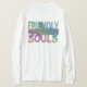 O design de t-shirt apresenta o texto "Almas Amigáveis" num monitor vibrante e multicolorido. As cores são brilhantes e alegres, e a design geral é divertida e convidativa. O texto é apresentado de uma forma que evoca um sentimento de calor e camaradagem, e o design deve trazer um sorriso a quem o vir.