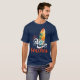 Aloha ensina camiseta azul marinho masculino com conselho surf e design solar. Este design apresenta a Aloha na fonte design de caligrafia com um conselho de surfe e raios solares.