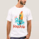 Aloha ensina camiseta branca masculina com conselho surf e design de sol. Este design apresenta a Aloha na fonte design de caligrafia com um conselho de surfe e raios solares.