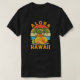 Aloha Havaí Palmeiras Praia e Abacaxis Desenho gráfico retrô de abacaxis e laranjas coloridos. Ondas da praia do oceano e palmeiras. Nós amamos o Havaí. Muitos nomes de praias. Adicione este design a outros produtos. Altere a cor da camisa, adicione texto.
