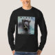 Engraçado, ofensivo, legal camiseta longa de homens com um chimpanzé com atitude que dá a saudação do dedo médio. As legendas dizem "Aloha" e "Tenha um bom dia". Trabalho de arte original do KL Stock.
