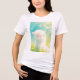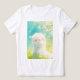 Uma alpaca lisa, com um sorriso contente, encontra-se no meio de uma vibrante cena de primavera, rodeada por flores florescentes e luz solar suave. As pétalas flutuam pelo ar, criando uma atmosfera pacífica e alegre.