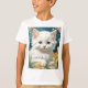 T-Shirt com um gatinho no estilo Art Nouveau de Alphonse Mucha! Um gatinho branco e fofo com poses azuis com flores amarelas. Um presente bonito para amantes de gatos e colecionadores de Art Nouveau!