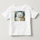 Toddler T-Shirt com um gatinho no estilo Art Nouveau de Alphonse Mucha! Um gatinho branco e fofo com poses azuis com flores amarelas. Um presente bonito para amantes de gatos e colecionadores de Art Nouveau!