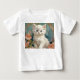 Baby T-Shirt com um gato branco no estilo de Alphonse Mucha! Este gatinho liso e de olhos azuis posou com flores cor-de-rosa e cobertores azuis. Um presente fabuloso para amantes de gatos e colecionadores de Art Nouveau!