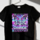 Aqui está outro design de t-shirt estética Y2K que apresenta o texto do cromo 3D com brilho lendo "555 Change" com um fundo inspirado no cibercore e na vaporwave, uma borboleta holográfica e faíscas do estilo rhinestone. ✨ 🦋 💎