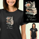 Camiseta Alterar Texto, Livros e Gatos, com Flores, a Preto