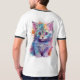 Uma peça de arte de conteúdo generativo, que significa que minha criação é feita usando inteligência artificial (AI), um gato bonito na frente e um gato bonito diferente nas costas que se complementam. Usando várias variações de fazer de cor para uma imagem única e muito original com a mensagem "Cute Cat Lover".