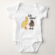 Este lindo traje de bebê tutu mostra minhas fotos de perto de dois adoráveis patinhos. O patinho amarelo mais alto fica virado para a frente e a cinza mais curta fica virada para longe da outra. Preencha os campos modelo com suas palavras ou remova o texto.