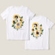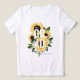 Camiseta elegante de girassol, estilo país. Nossa design apresenta nossos ouros pintados manualmente, girassóis amarelos, florais brancos e verde natural, arranjados para criar este elegante arranjo de país. Personalize com seu nome de formando e ano escolar. O verso apresenta os nossos girassóis amarelos de cor aquosa desenhados à mão juntamente com o ano. Todas as flores são obras de arte originais pintadas à mão e desenhadas pela Paparia de Moodthologia.