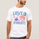 Esta design apresenta uma camiseta branca com a palavra "LOVE" no topo, um gráfico global e as palavras "MY STUDENTS" no fundo. As letras "B" estão espalhadas por todo o design, e um gráfico de maçã roxo também está incluído.