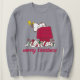 Celebre as férias e o seu amor pelos amendoins com esta design de suéter de Natal Feio com Snoopy e Woodstock tocados na casa de cães de Snoopy olhando sobre uma pilha de presentes.