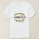 Um texto colorido feito à mão com spray pode ser escrito "AMÉRICA" em cores americanas. Celebre seu orgulho americano com nossa camiseta "América"! Apresentando uma design ousada que destaca o espírito duradouro da terra dos livres e da casa dos corajosos. Esta camisa oferece conforto e estilo para todos os patriotas. Vista-o orgulhosamente e honre o patrimônio americano!