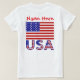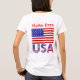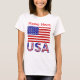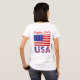 T-shirt feminina personalizada, mostrando a bandeira dos Estados Unidos da América com as letras EUA abaixo, em vermelho, branco e azul, com estrelas e listras, encontradas na bandeira. Personalize adicionando seu nome ou, para um presente criativo, adicione o nome de outra pessoa. Excelente para feriados patrióticos. Divertido em vestir às reuniões familiares e às comemorações do Dia da Independência.