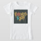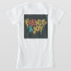 Um design de camiseta alegre mostra as palavras "Amigos e alegria
