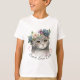 Camiseta de gatos do Peace Love: Abraçar seu amor por gatos com esta adorável camiseta apresentando um gato cinza com olhos expressivos, adornada com uma coroa floral. A design é completada com corações cor-de-rosa e a frase "Cats de Amor pela Paz" em uma encantadora letra cursiva. Perfeito para amantes de gatos que apreciam um toque de natureza e harmonia no seu armário.