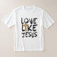 Christian T-Shirt traz uma citação inspiradora, "AMOR COMO JESUS." Apresenta letras em negrito com uma cruz de ouro.