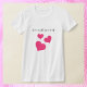 Três bonito corações cor-de-rosa decoram esta camisa. O AMOR É TUDO O QUE PRECISAS numa escrita decorativa negra.