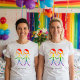 Esta camisa apresenta um design bonito e elegante para trazer um toque coeso e significativo para a sua celebração de casamento. O gráfico mostra duas mulheres, na forma de figuras elegantes de palitos, de mãos dadas. Os números são coloridos num belo arco-íris, simbolizando amor e diversidade. Esta camisa é uma maneira maravilhosa de celebrar sua história de amor com cada detalhe do seu dia especial.