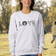 Fácil de personalizar com uma foto de precioso do seu animal de estimação. Texto: "AMOR" em uma simples tipografia negra. Quer você esteja caminhando no parque ou passeando em casa, este suéter único será seu companheiro fiel, irradiando amor e felicidade onde quer que esteja vestido!