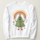 Celebre a estação com esta design chorona e animadora! Apresentando um personagem alegre da árvore de Natal, cheio de luzes festivas e botas confortáveis, parado sob um arco-íris vibrante com a mensagem "Amor, Paz, Natal." Esta imagem divertida e colorida exumenta vermelhos e é perfeita para espalhar energia positiva e alegria de férias com um traço de nostalgia.
