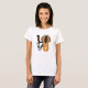 Uma camisa de queda que diz "Amor" com um toque de xadrez, impressão-leopardo e uma abóbora.