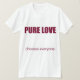 "Amor puro" em letras grandes e vermelhas "escolhe todo mundo." em letras menores na camisa. Uma camiseta contemplando a realidade espiritual que o amor divino escolhe a todos, não apenas algumas pessoas às vezes, mas todos sempre para sempre. Consulte PureLoveShop.com para mais informações sobre o Pure Love.