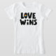 Este design apresenta a frase Amor vence com um coração colorido de arco-íris.