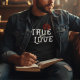 O dia de os namorados está chegando, e nunca é cedo demais para ter um presente especial para seu amante e combinar t-shirt com seu parceiro. Este Legal gótico inspirou uma citação romântica sobre o amor por casais na tipografia branca verdadeiro amor apresentando uma mão de crânio assustadora segurando um amante de flores vermelhas que ama vibrações de halloween 2022 com Ossos de flor e crânio de botânica. Este design legal é o dom único perfeito para os casais celebrarem uma vibração de dias de os namorados primitivos ou feriados de inverno, ou até aniversários, em uma camiseta legal para amantes verdadeiros.
