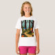 The forest features tall trees and mushrooms in various colors, including blue, red, and orange.