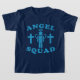 Texto azul "Angel Squad", estilo Vintage, com o símbolo de uma pessoa com asas e um halo. Cruzes flanqueam a pessoa nesta design cristã. Os produtos são personalizáveis para fazer seu item de um tipo.