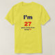 Eu sou 27 anos de aways de ser o design cómico do aniversário de 30 anos 57 que parece barbear alguns anos fora de sua idade com a rotulação muito grande "eu sou 27" anos e então que da rotulação muito menor "longe de ser 57". Faz um grande presente de aniversário de 30 anos.