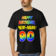 A frente deste design de camisa de aniversário vibrante, alegre e ousada apresenta um grande número "90" e a mensagem "FELIZ ANIVERSÁRIO", ambas coloridas com um padrão inspirado no gradiente do espectro do arco-íris, junto com um nome personalizado amarelo ousado. Camisas empolgantes e com o aniversário como esta podem ser vestidas pelos participantes de uma festa que está sendo realizada para celebrar o aniversário de 90 anos de alguém. [~Z0000473]