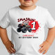 Prepare-se para rasgar, andar e esmagar em uma celebração de aniversário de 1 ano de alta octanagem feita para o seu pequeno corredor. Esta camisa de caminhão monstro é uma adição perfeita para a festa de aniversário de um menino cheia de ação, sujeira e motores rugindo. Ótimo para temas de primeiro aniversário como festa de esmagamento, monster jam ou aventuras de roda gigante. Personalize os detalhes para ligar os motores para uma festa que os convidados não esquecerão.