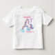 Uma camisa de aniversário de 3 anos bonitinha. Possui um unicórnio cartoon com mané colorido e cauda de listras azuis, rosa, amarelas e roxas e um arco-íris colorido brilhante com nuvens. Um doce design para o aniversário de qualquer menina. Pode ser personalizado alterando a idade e depois personalizá-la adicionando o nome da criança para fazer isso e um presente especial único e extra para aquela menina adorável que ama unicórnios de conto de fadas.