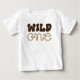 Celebre o primeiro aniversário do seu pequeno com esta camiseta temática western rústica! O design apresenta um tema de cowboy. O texto está em uma fonte negrito e diz "SELVAGEM". Esta camiseta é perfeita para qualquer pequeno cowboy ou cowgirl. Também é uma ótima maneira de definir o tom para uma festa temática do oeste selvagem. Apronte-se e prepare-se para uma cavalgada selvagem!