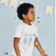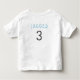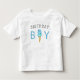 Camisa de aniversário do tema do sorvete divertido com ilustração aquosa do sorvete azul e verde-menta em um cone waffle. O texto na frente diz "aniversariante" e você pode adicionar o nome e a idade do seu filho no verso.
