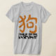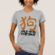 Silhuetas de alguns cães com o ideograma alaranjado customizável na camisa do cinza das mulheres. O ano do cão (título) e o ano não são customizáveis. Aperfeiçoe por o ano novo chinês do cão 2018. ----- "O cão (狗) é um do ciclo de 12 anos dos animais que aparecem no zodíaco chinês relativo ao calendário chinês. O ano do cão é associado com o 戌 terrestre do símbolo do ramo. O 狗 do caráter refere o animal real quando o 戌 referir o animal do zodíaco. (...) As pessoas nascidas dentro destas escalas da data podem ser ditas ter sido nascidas no "ano do cão", ao igualmente carregar o seguinte sinal elementar: