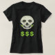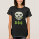 Anti-Big Pharma mostra um crânio com olhos vermelhos esmaecidos, agulhas cruzadas e sinais de dólar. Um gráfico legal com uma mensagem forte.