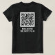 Uma camisa para aqueles que não querem ser filmados ou digitalizados. O código QR atualmente leva a um site chato, mas pode ser personalizado para qualquer site que você quiser. O texto também pode ser personalizado. O design é o mesmo na frente e atrás. Um provável dissuasor contra quem quer que você queira filmar você quando você prefere que não, pois eles não vão querer arriscar seu dispositivo apontando-o para o QR. Não é recomendável usar esta t-shirt para violar quaisquer leis.
