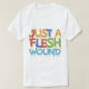 Esta design de camiseta apresenta a frase "Apenas uma ferida de carne" em uma fonte espalhada e multicolorida. O brincalhão e as cores vibrantes evocam um senso de humor, referindo a linha clássica de Monty Python e do Santo Graal enquanto mantem o design iluminado e divertido.