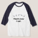 A t-shirt chegou dentro do tempo anunciado e apresentou-se com todas as características que estavam anunciadas. Boa qualidade do tecido e bons acabamentos. O tamanho veio conforme o pedido. Perfeita! Fiz apenas uma pequena personalização no texto, e o mesmo assim veio, bem como todo o restante texto, devidamente impresso e exactamente como estava anunciado na página. Sem falhas!