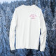 Après All Day, solteira de esqui rosa-quente, camiseta de manga longa. Personalize com o ano de sua viagem de esqui/festa e o nome das noivas. Perfeito para a sua festa noiva numa viagem de esqui de solteira ou festa de solteira do tema Après Ski. Projetado para combinar com a nossa coleção de esqueletos rosa quente Après All Day.