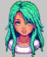 Um retrato de arte em pixéis vibrante que apresenta um jovem personagem com cabelos aqua-verdes longos e fluentes, olhos lacrimogêneos e uma expressão serena. O design incorpora tons suaves e terríveis para a pele, contrastando lindamente com o cabelo brilhante e dinâmico. O assunto veste um simples topo branco que acentua sua vibração natural e tranquila. O estilo design transmite um charme etéreo, de outro mundo, fazer adequado para configurações de fantasia ou jogos.