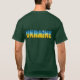 A palavra Ucrânia em suas cores de camiseta amarela e azul sobre fundo verde