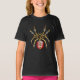 Aranha mecânica, com pá-pá de ouro, engrenagens de latão e uma lâmpada de vidro vermelha sobre fundo preto. Estilo Steampunk.